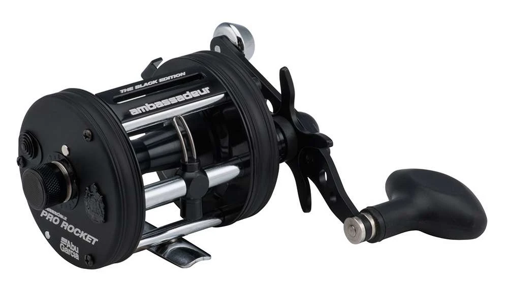 Abu Garcia Pro Rocket Casting Reel Black Edition is engineered for its long casting abilities. Swedish craftsmanship and design are at the center of Abu Garcia’s Ambassadeur Pro Rocket Casting Reel. Featuring a six-pin centrifugal braking system and robust aluminum construction, the reel delivers superior casting performance and rock-solid durability. Four stainless steel ball bearings and one roller bearing provide smooth operation. Carbon Matrix™ drag system provides smooth, consistent drag pressure across the entire drag range. Synchronized levelwind system improves line lay and castability. Extended bent handle for increased cranking power.