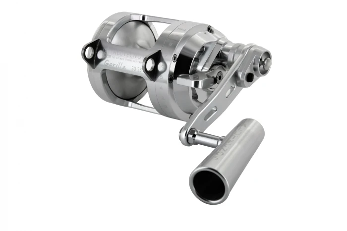 New Gorilla 30 2S and 30 W 2S, integrated drag pre-set and drag pre set with ergonomic design for the maximum comfort during the fishing action. “Multi Drag Disc” system can be set up over 50 Lbs with guarantee free-spool; a longer operating lever with the aluminum ergonomic handle allows to generate the maximum power to better exploit the 2 Speed system and retrieve easily any catch.