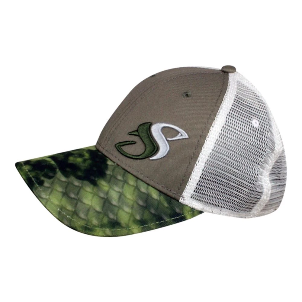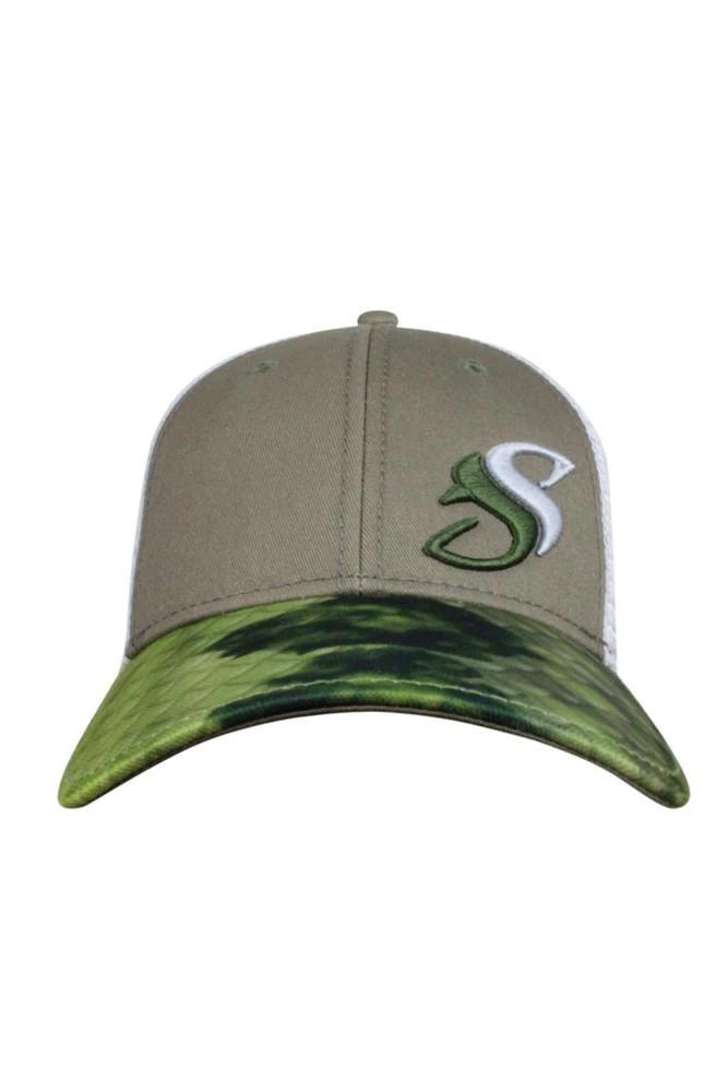 Channel the relentless Bass with our signature Salty Scale patterning . A dye sublimated bill and infused colors protect against color loss, and a velcro backing ensures a comfortable fit. This cap is a standout piece of apparel for braving the elements. Made proudly in the USA.