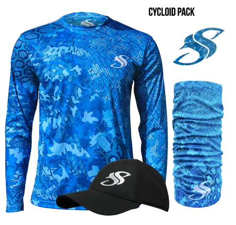 Our new SS cycloid camo gift pack features our uniquely designed camo long-sleeve performance shirt, the SS black hat, and our matching face shield.