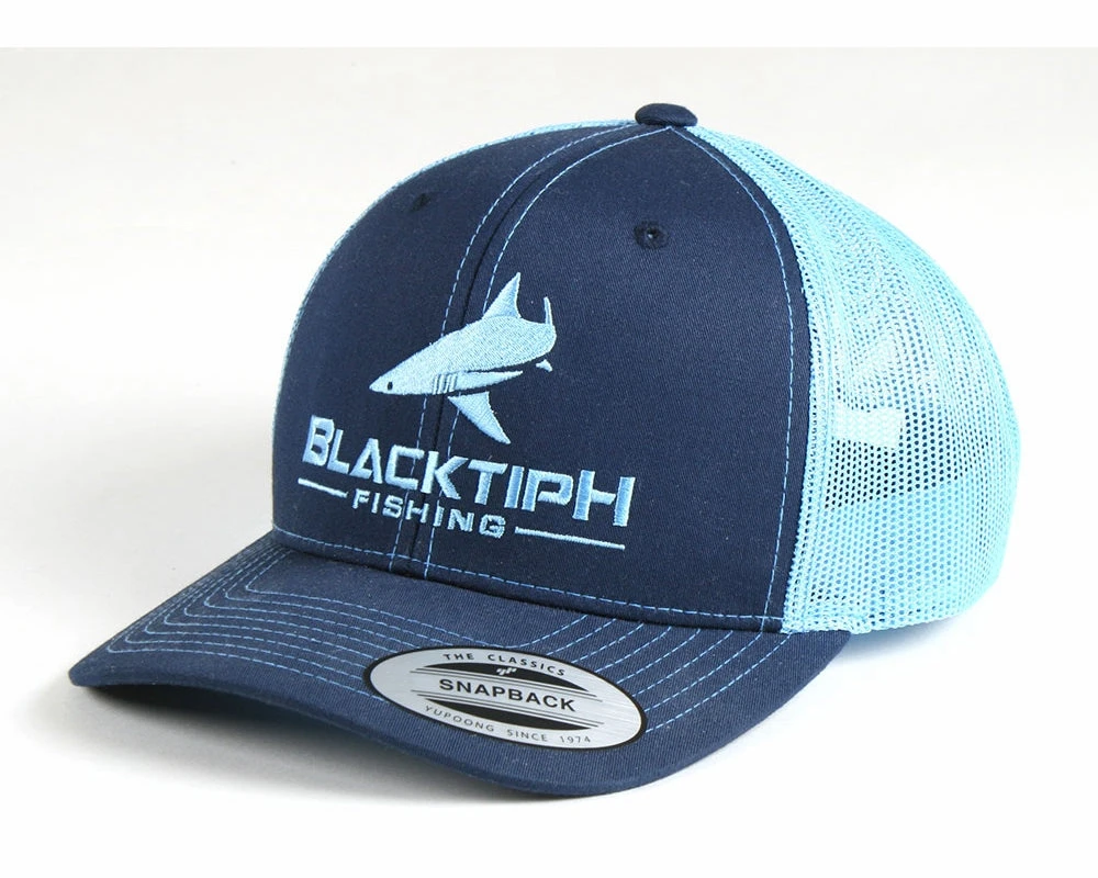 The BlacktipH Classic Snapback Hat is a one size fits most hat. It features the BlacktipH logo across the front. It has a mesh snap back and solid front. The mesh will keep your head cool and comfortable. Perfect for long days out on the water, boat or beach.