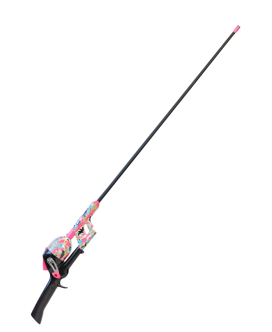 The Kid Casters No Tangle Combo (girl edition) comes equipped with a 34″ inline rod and reel combo, plastic casting plug, rattle bobber, and a pre-tied snap swivel. The reel has a 3.3:1 gear ratio and comes equipped with 6lb line. Expect a perfect Tangle-FREE cast time after time! Perfect for teaching kids how to fish and truly a parent’s dream come true!