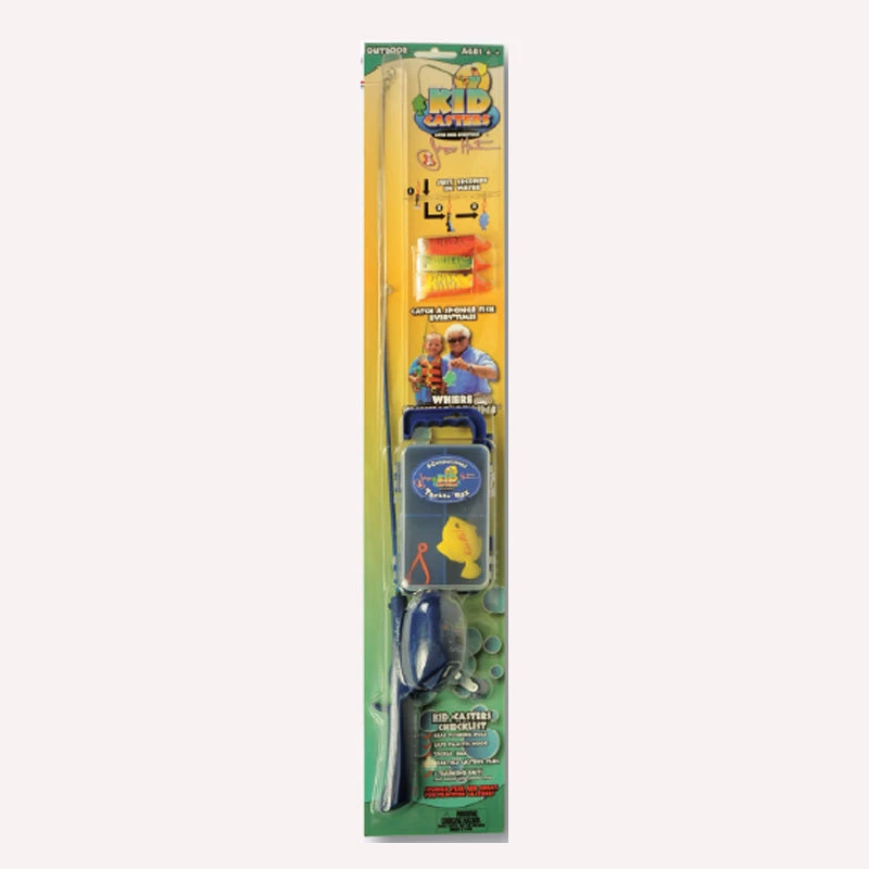 Catch One Everytime! Jimmy Houston Kid Casters fishing combo pack is just what kids need to get outdoors and learn the great sport of fishing. The combo pack comes equipped with a real fishing rod & reel, tackle box, casting plug, safe hook, training lures, and fish identifier guide. Kids can now experience the joys of fishing in a safe, fun, and educational manner without the uncertainty of whether the fish are biting or the risk of sharp hooks.
